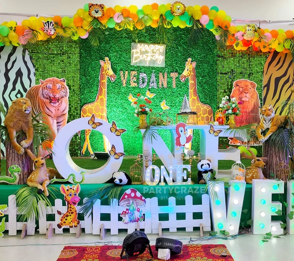 Wild and adventurous, this theme brings the jungle to life. With animal balloons, leafy décor, and fun safari hats for kids, it’s a roaring hit. Add a face-painting station for that wild vibe!